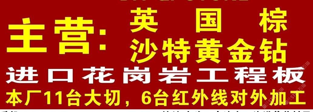 本公司主營:英國棕、黃金鉆,藍(lán)眼睛,安格拉黑、黃蝴蝶、淺紫點、進(jìn)口花崗巖等,地址:南安市水頭鎮(zhèn)高速出口洋美茂高鐵橋下!歡迎前來咨詢