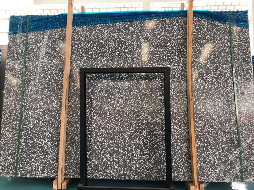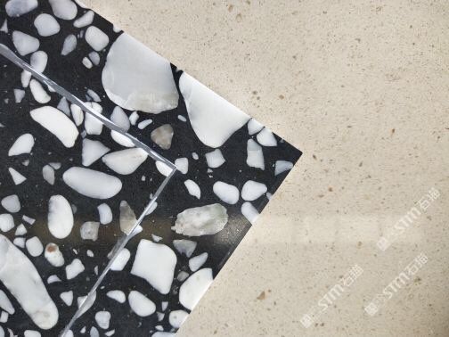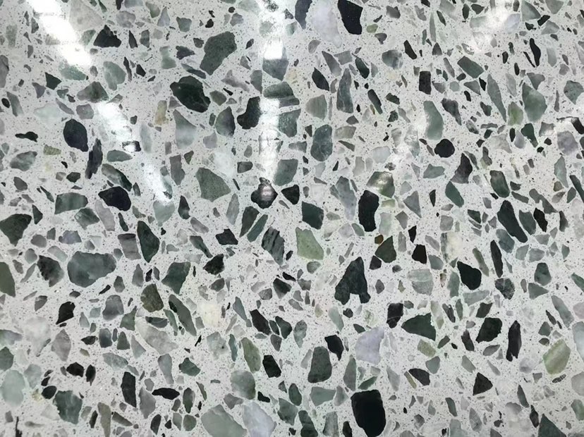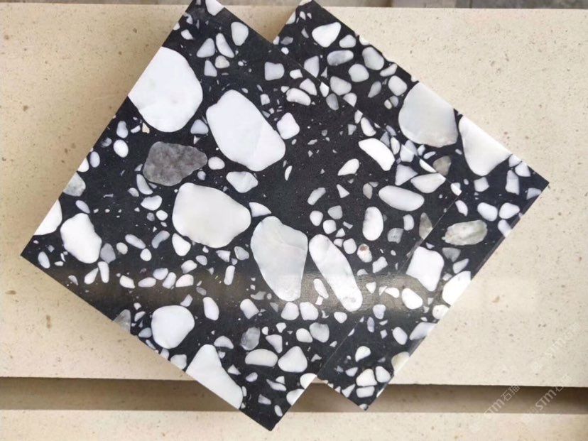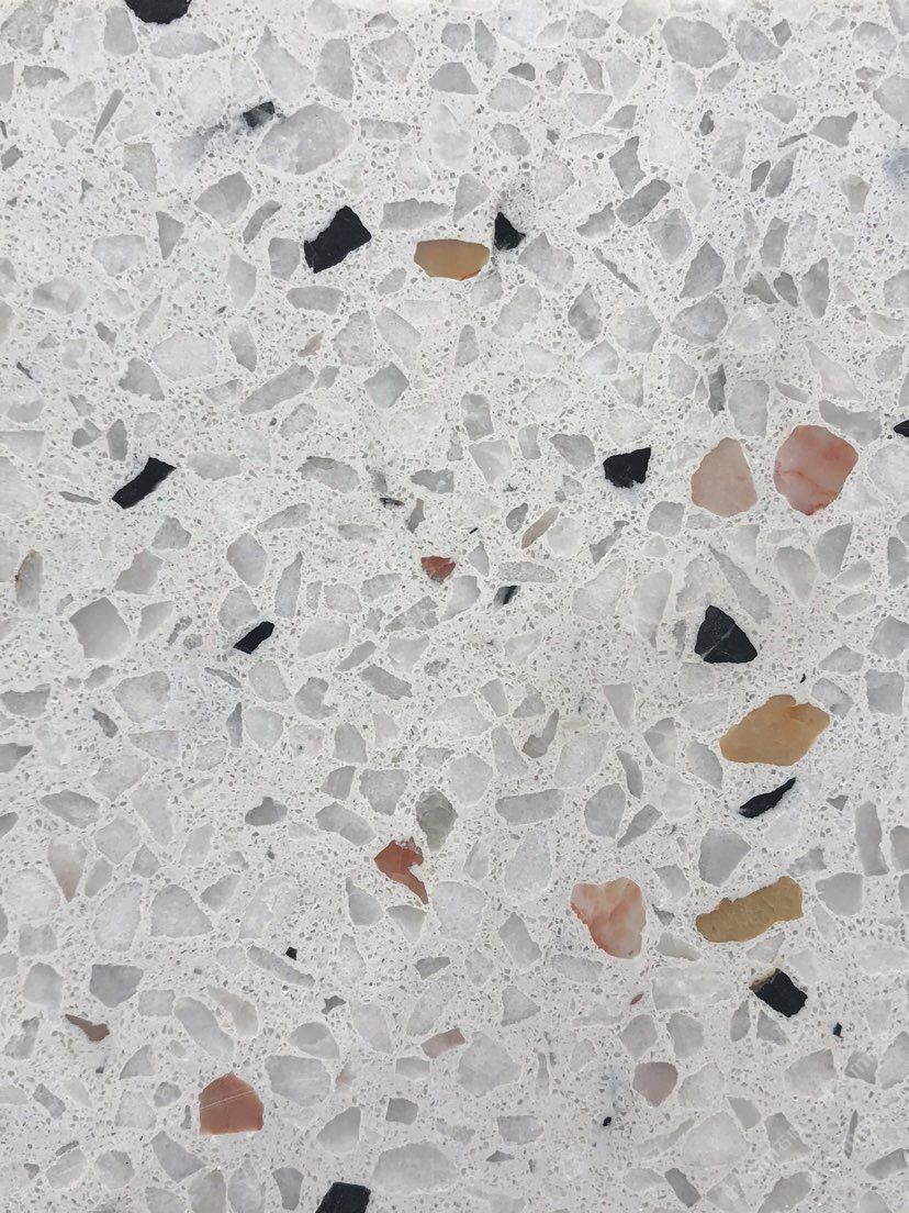 人造無(wú)機(jī)水磨石,生產(chǎn)主要原材料,天然礦石沙,高標(biāo)號(hào)白水泥和水,經(jīng)過(guò)先進(jìn)制作工藝流程壓制成型荒料,再根據(jù)工程設(shè)計(jì)厚薄規(guī)格切割成大板。