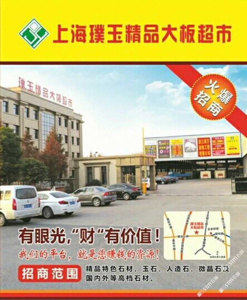 上海璞玉精品大板超市位于上海市曹安公路石材聚集區(qū)黃金地段,旨在打造曹安公路標(biāo)準(zhǔn)化,高品質(zhì)的大板展示車(chē)間及配套完善的石材交易平臺(tái)。