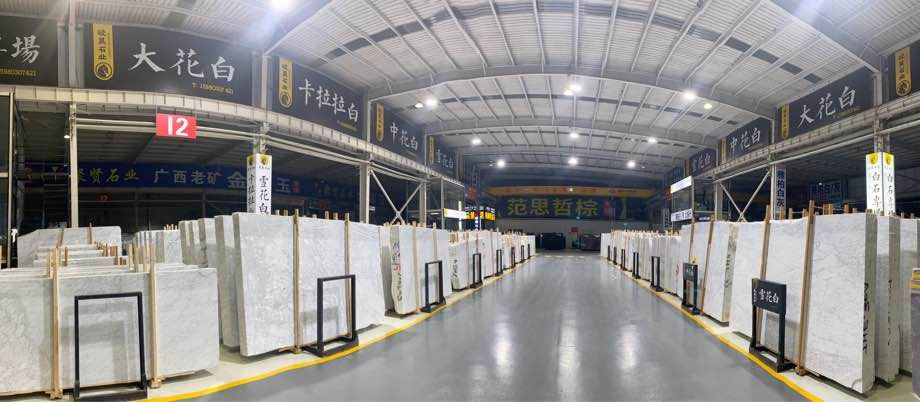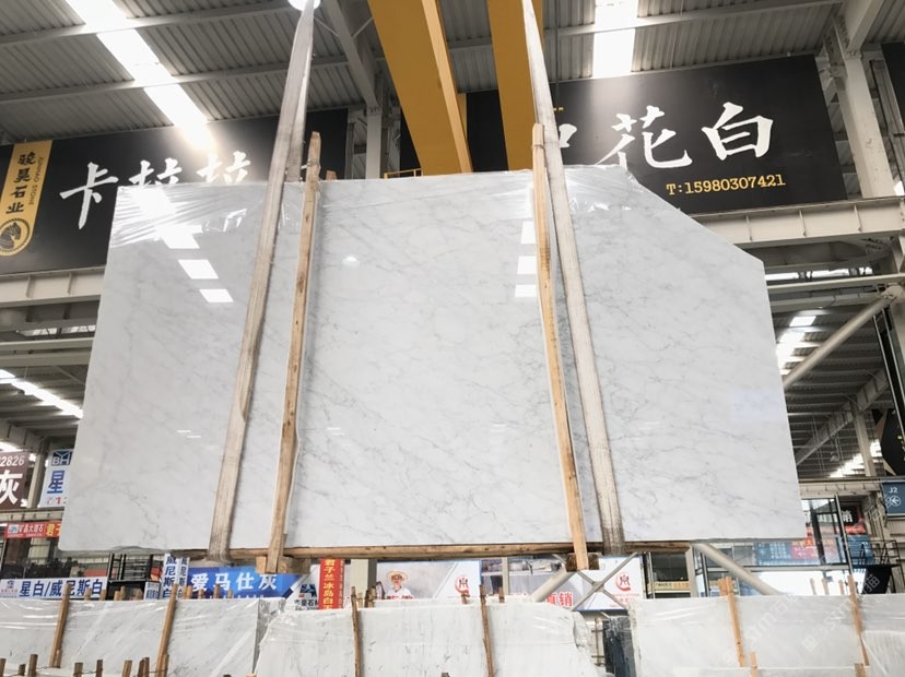大量精品中花白、卡拉拉白、雪花白大板、荒料