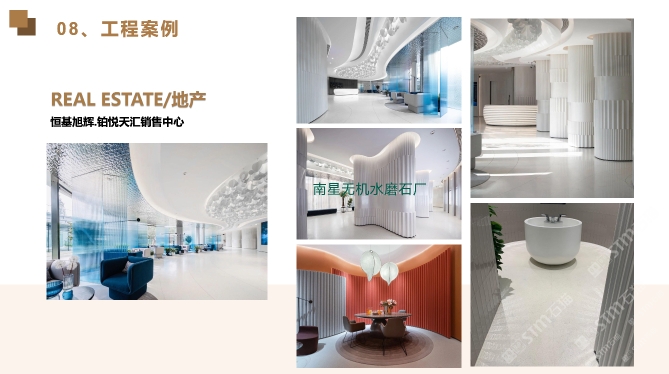 東星集團(tuán)是國內(nèi)擁有40多年經(jīng)營歷史的大型石材全產(chǎn)業(yè)鏈生產(chǎn)運(yùn)營投資的集團(tuán)企業(yè)。下屬包括:南星大理石,東星人造石-無機(jī)水磨石,東星奢石,東星國際貿(mào)易,東星文旅,東星地產(chǎn)等。公司擁有龐大的加工生產(chǎn)能力、是保利、恒大、中海、綠地、萬達(dá)、星河灣、雅居樂等大型房地產(chǎn)企業(yè)的戰(zhàn)略合作伙伴。產(chǎn)品線覆蓋奢石、玉石、大理石、崗石、水磨石、花崗巖等產(chǎn)品。旗下東星無機(jī)水磨石廠主要生產(chǎn)無機(jī)水磨石/無機(jī)洞石及其它改性水泥預(yù)制產(chǎn)品。