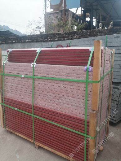 本廠始建于1990年,現(xiàn)擁有中國紅、滎經紅礦山的開采權,總廠有大型切機15臺、拋光機22臺、高精度切邊機8臺,40臺切機。年產各型中國紅板材27萬平方米,該產品經國家產品質量監(jiān)督機構按JC518—1993標準檢驗,符合A類產品要求,是室內外建筑裝飾的理想材料。生產的毛光板按中國紅特有的花色品種分類存放,滿足特大型客戶的需求。