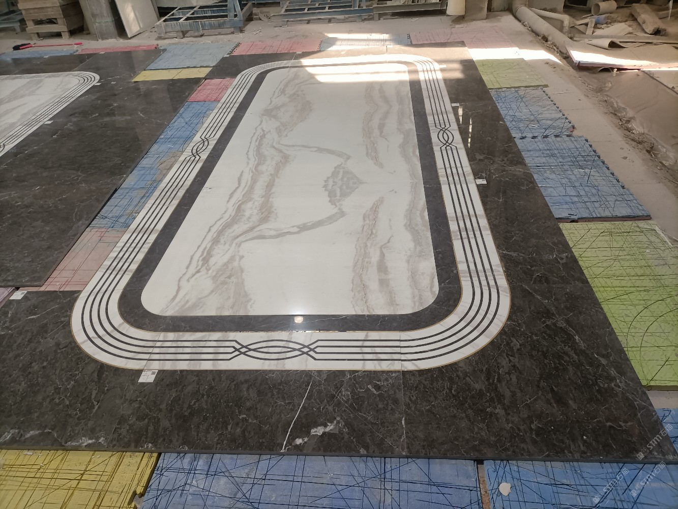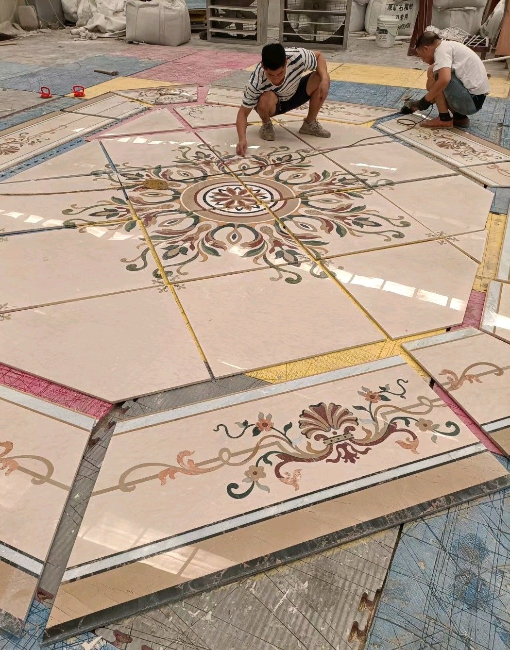 公司水刀拼花生產(chǎn)線:擁有6臺(tái)大型水刀設(shè)備,拼花年產(chǎn)量達(dá)10000多平方米。水刀師傅從業(yè)時(shí)間久,誠(chéng)信務(wù)實(shí),質(zhì)量好!所生產(chǎn)的工藝拼圖暢銷(xiāo)全國(guó)及世界各地,是別墅建筑至善至美的選擇。