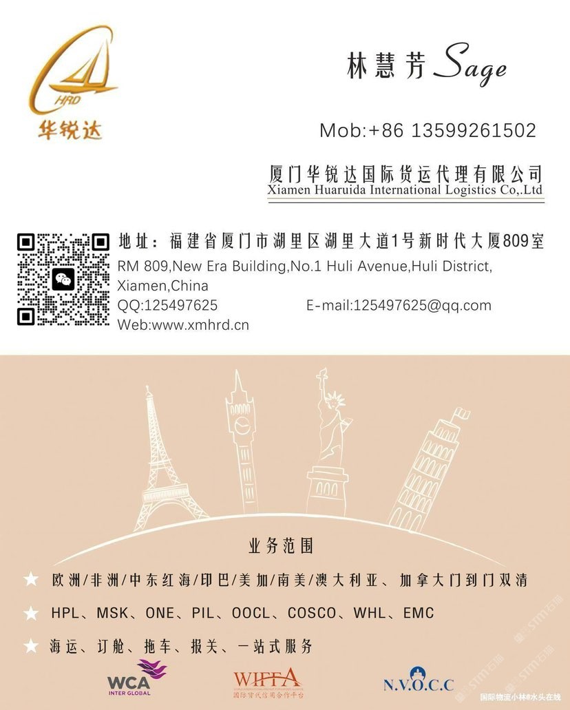 廈門華銳達(成立于2012年)是經(jīng)商務部批準的一級國際貨運代理及無船承運人(MOC-NV12724),總部位于廈門自貿(mào)區(qū)新時代大廈。