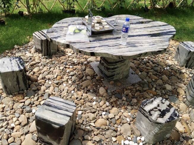高端大氣戶外石桌,板凳九龍壁
