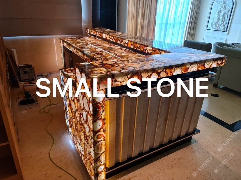 發(fā)布信息: 金寶石工廠制作(13636969792蔡) 瑪瑙紅?金箔制成大板。進(jìn)行尺寸切割及45度角拼接。瑪瑙自帶晶體,在光電的作用下更顯特色。
