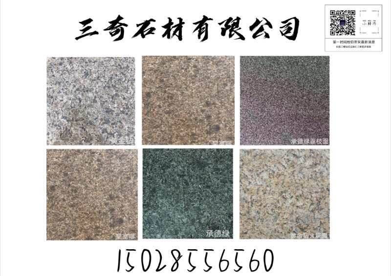 三奇石材有限公司 聯(lián)系人:王鵬賀    150****6560 查看 手機(jī)號(hào)碼:無 主營(yíng)范圍: 花崗巖加工、大板批發(fā)、荒料、石材工藝品、異型加工、 企業(yè)地址:河北承德承德縣甲山鎮(zhèn)趙家莊村