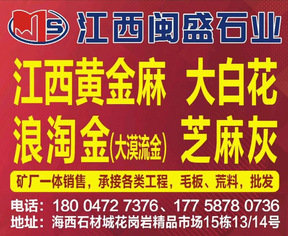 江西閩盛石業(yè) 聯(lián)系人:呂    177****0736 查看 177****0736 查看 主營(yíng)范圍: 荒料、花崗巖加工、礦山、 企業(yè)地址:福建泉州海西石材城花崗巖區(qū)15棟14/13號(hào)