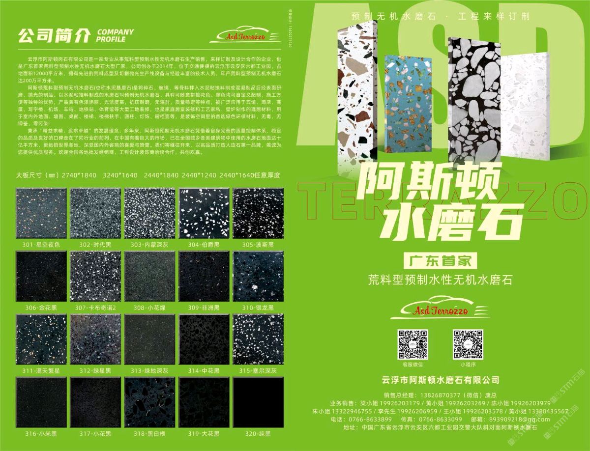 發(fā)布信息: 阿斯頓水磨石大量現(xiàn)貨庫存、款式達400多種,單款現(xiàn)貨超1000平方 滿足急單,也可來樣訂制/設(shè)計,合作共贏??!
