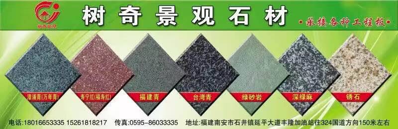 樹(shù)奇景觀石材 聯(lián)系人:繆總    180****3335 查看 180****3335 查看 主營(yíng)范圍: 大板批發(fā)、 企業(yè)地址:福建泉州南安市石井鎮(zhèn)延平大道豐隆加油站旁