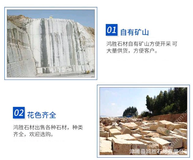 漳浦縣鴻勝石材有限公司 聯(lián)系人:楊先生    135****8872 查看 手機(jī)號(hào)碼:無(wú) 主營(yíng)范圍: 花崗巖加工、異型加工、礦山、石材雕刻、荒料、環(huán)境石材、 企業(yè)地址:福建漳州漳浦縣X522漳浦鴻勝石材有限公司