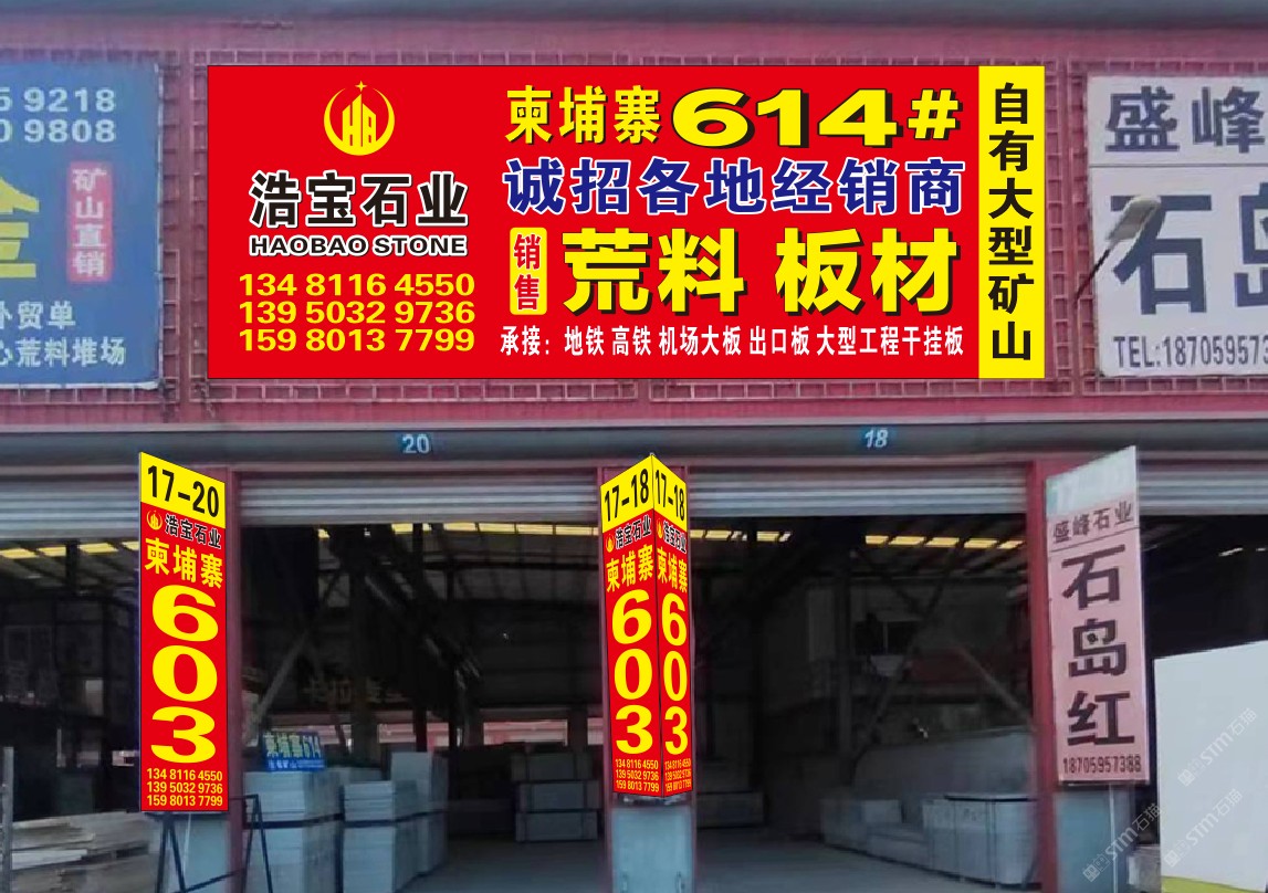 浩寶石業(yè) 聯(lián)系人:許    131****0336 查看 手機(jī)號(hào)碼:無(wú) 主營(yíng)范圍: 大板批發(fā)、荒料、花崗巖加工、異型加工、礦山、 企業(yè)地址:福建泉州南安市水頭鎮(zhèn)東升大板市場(chǎng)后面加工區(qū)2區(qū)11號(hào)