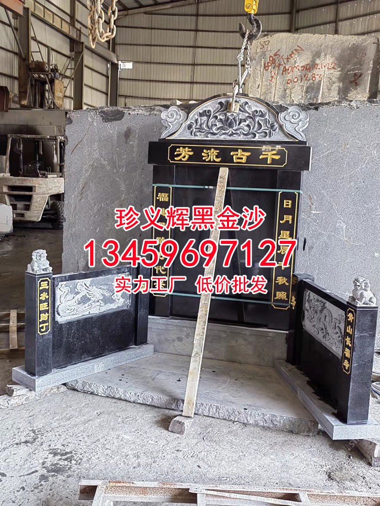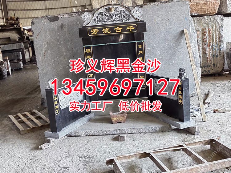 印度黑金沙安哥拉黑黑金砂墓碑石材中式墓碑公墓套墓