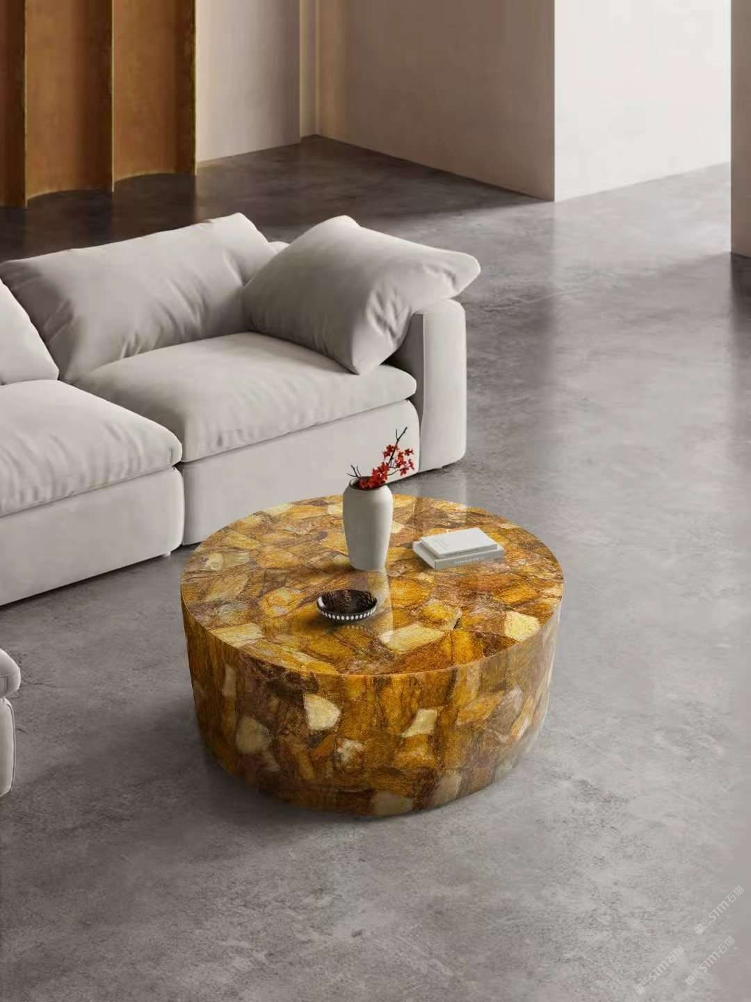 定制透光黃水晶茶幾,發(fā)光半寶石家具,高端定制