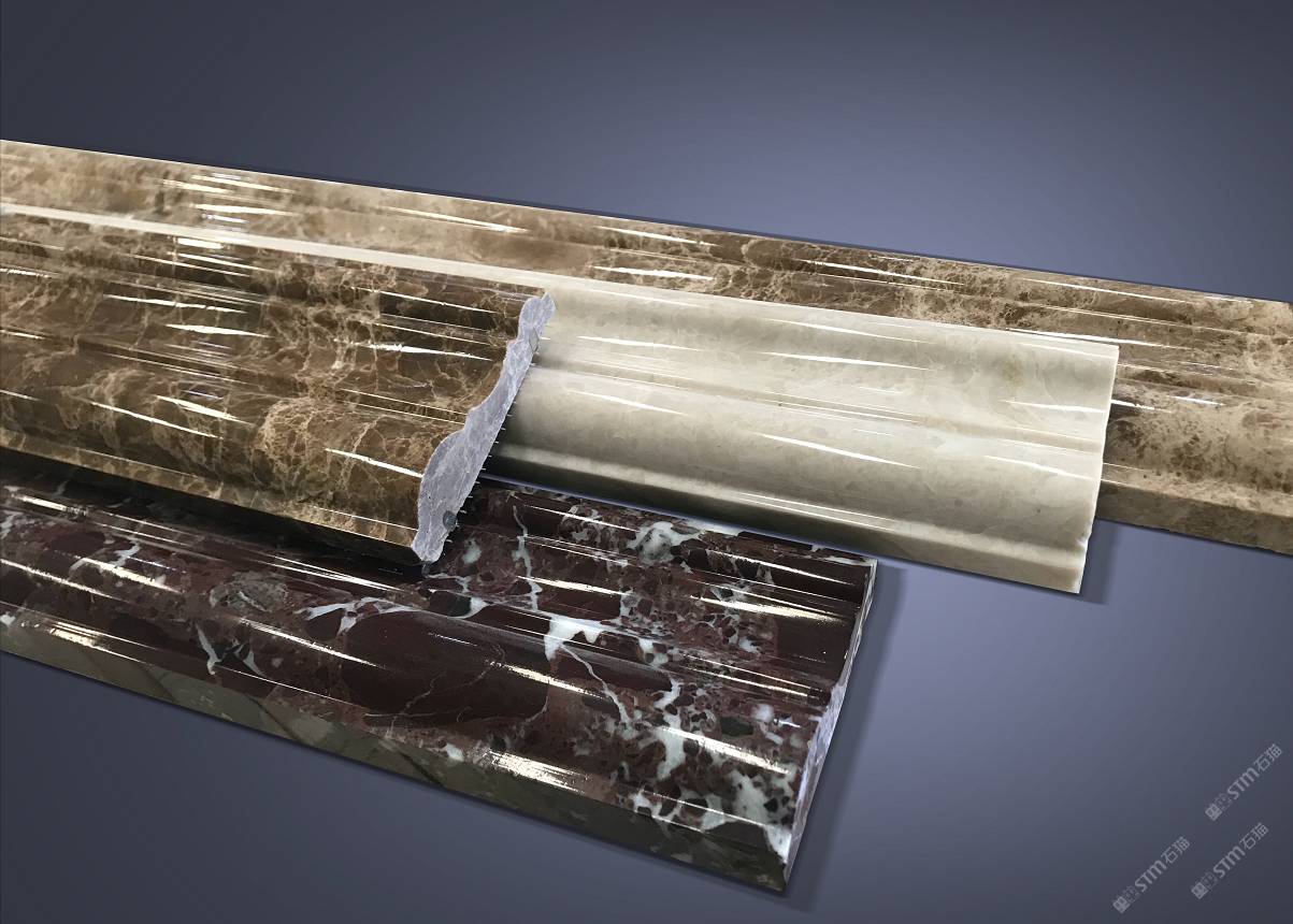描述:裝飾中經(jīng)常用一些異型石材線條以達(dá)到使用美觀的目的。石線通常用天然大理石、花崗巖、玉石加工成單件或者多件組合拼接,形成整體的連續(xù)的石材線條。也有用模具將人造石壓制而成。